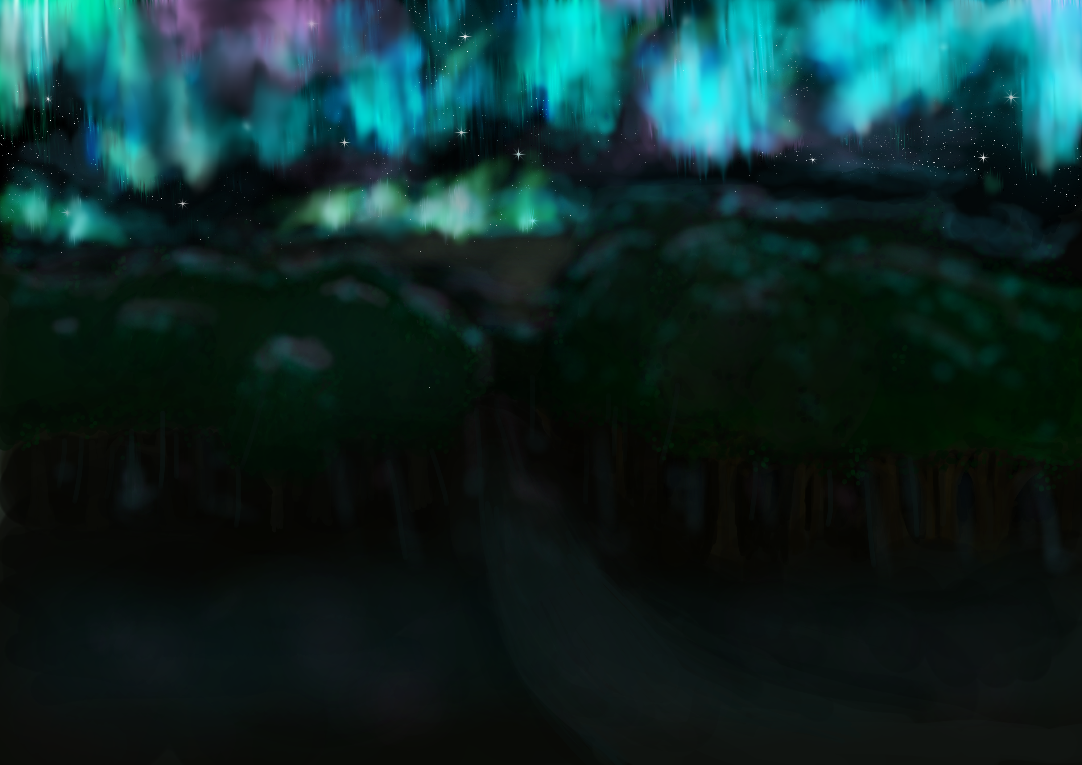 A swirled cloud of red light wavered uncertainly in the night sky directly above him. Vertical streaks of pink and purple slowly flared through the red, forming curves and bends of vibrant color that dominated the night and shone a dim glow on the world below. In the span of a few seconds, the purple hues had shifted to a light blue trailed by an electric green, all the colors swirling together and crawling across the field of stars.